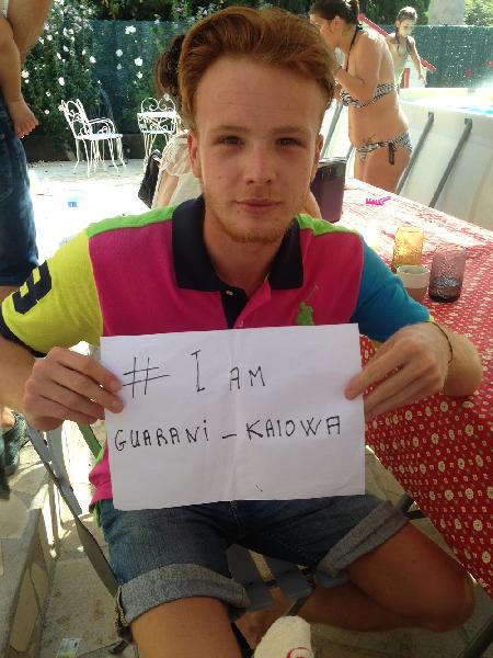 Avec le soutien de personnalités (Paul Watson, Pierce Brosnan, Pierre Richard…), Planète Amazone relaye une cyberaction internationale d’urgence et appelle les internautes du monde entier à se mobiliser par milliers pour sauver le peuple Guarani-Kaiowá en se mettant en scène avec le hashtag #IamGuaraniKaiowa. Postés sur une page dédiée, les photos seront transmises à la Présidente du Brésil, afin de l’exhorter à signer prestement le décret d’homologation de 22 terres indigènes Guarani-Kaiowá, comme l’y oblige la Constitution de 1988, pour mettre fin aux conflits fonciers motivant l’annihilation de ce peuple de 45 000 âmes par les grands propriétaires terriens.