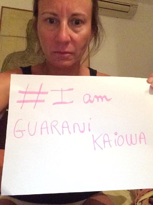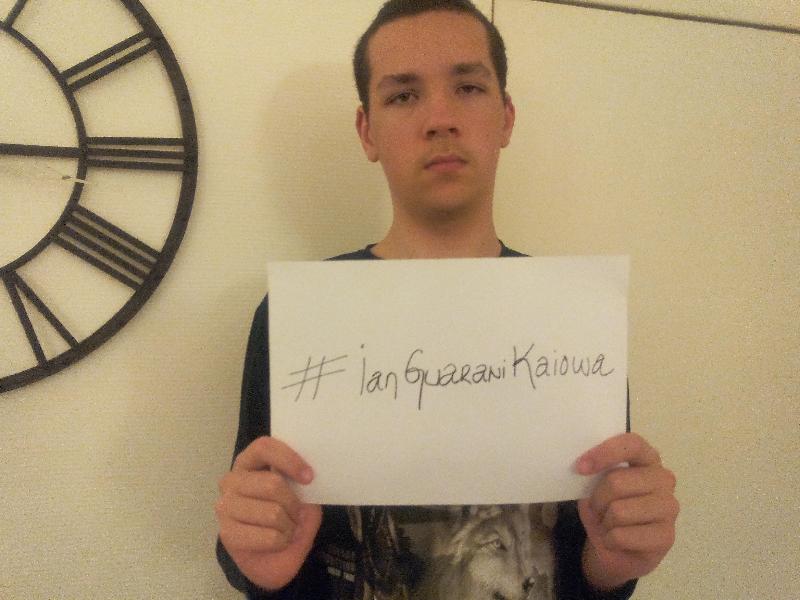 Avec le soutien de personnalités (Paul Watson, Pierce Brosnan, Pierre Richard…), Planète Amazone relaye une cyberaction internationale d’urgence et appelle les internautes du monde entier à se mobiliser par milliers pour sauver le peuple Guarani-Kaiowá en se mettant en scène avec le hashtag #IamGuaraniKaiowa. Postés sur une page dédiée, les photos seront transmises à la Présidente du Brésil, afin de l’exhorter à signer prestement le décret d’homologation de 22 terres indigènes Guarani-Kaiowá, comme l’y oblige la Constitution de 1988, pour mettre fin aux conflits fonciers motivant l’annihilation de ce peuple de 45 000 âmes par les grands propriétaires terriens.