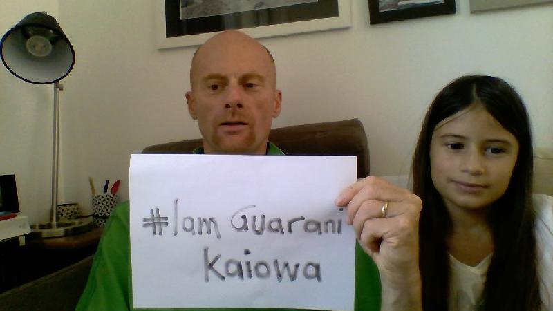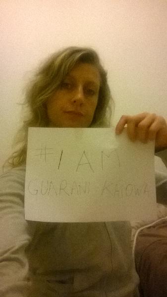 Avec le soutien de personnalités (Paul Watson, Pierce Brosnan, Pierre Richard…), Planète Amazone relaye une cyberaction internationale d’urgence et appelle les internautes du monde entier à se mobiliser par milliers pour sauver le peuple Guarani-Kaiowá en se mettant en scène avec le hashtag #IamGuaraniKaiowa. Postés sur une page dédiée, les photos seront transmises à la Présidente du Brésil, afin de l’exhorter à signer prestement le décret d’homologation de 22 terres indigènes Guarani-Kaiowá, comme l’y oblige la Constitution de 1988, pour mettre fin aux conflits fonciers motivant l’annihilation de ce peuple de 45 000 âmes par les grands propriétaires terriens.