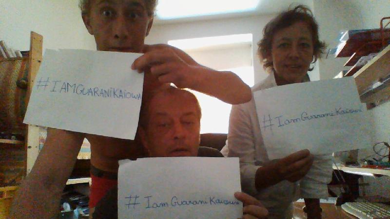 Avec le soutien de personnalités (Paul Watson, Pierce Brosnan, Pierre Richard…), Planète Amazone relaye une cyberaction internationale d’urgence et appelle les internautes du monde entier à se mobiliser par milliers pour sauver le peuple Guarani-Kaiowá en se mettant en scène avec le hashtag #IamGuaraniKaiowa. Postés sur une page dédiée, les photos seront transmises à la Présidente du Brésil, afin de l’exhorter à signer prestement le décret d’homologation de 22 terres indigènes Guarani-Kaiowá, comme l’y oblige la Constitution de 1988, pour mettre fin aux conflits fonciers motivant l’annihilation de ce peuple de 45 000 âmes par les grands propriétaires terriens.