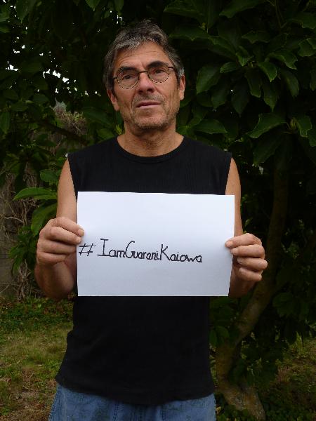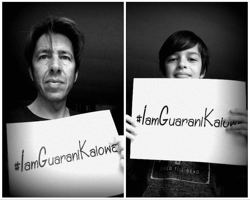 Avec le soutien de personnalités (Paul Watson, Pierce Brosnan, Pierre Richard…), Planète Amazone relaye une cyberaction internationale d’urgence et appelle les internautes du monde entier à se mobiliser par milliers pour sauver le peuple Guarani-Kaiowá en se mettant en scène avec le hashtag #IamGuaraniKaiowa. Postés sur une page dédiée, les photos seront transmises à la Présidente du Brésil, afin de l’exhorter à signer prestement le décret d’homologation de 22 terres indigènes Guarani-Kaiowá, comme l’y oblige la Constitution de 1988, pour mettre fin aux conflits fonciers motivant l’annihilation de ce peuple de 45 000 âmes par les grands propriétaires terriens.